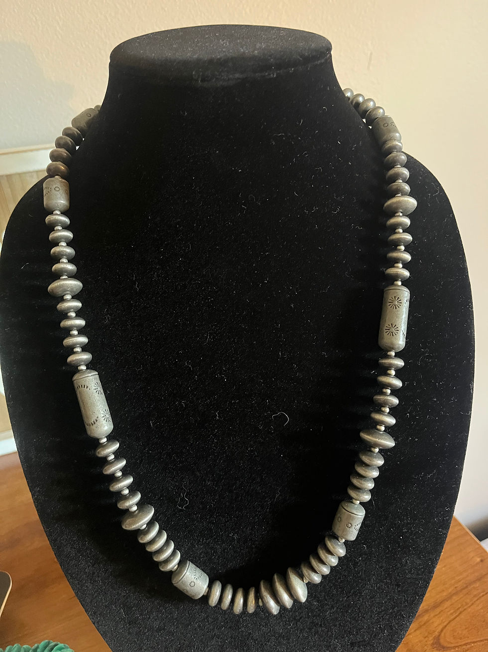 Faux silver Navajo Pearl Roundel and Totem Necklace