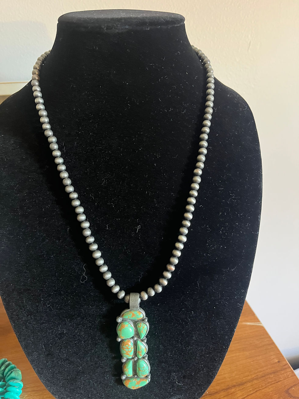 Faux 10 mm rounded silver Navajo pearl Necklace